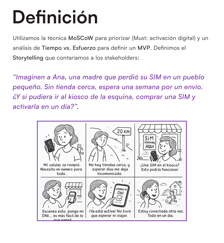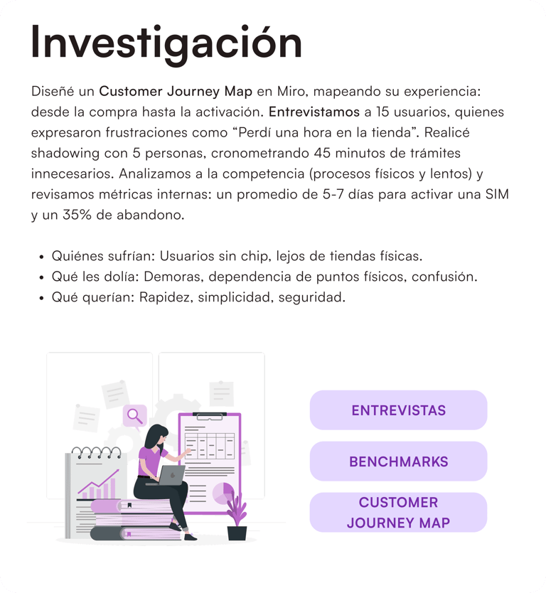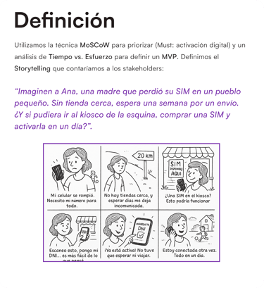 OBJETIVO Crear un proceso de activación más accesible, rápido y seguro para usuarios que requieren una nueva SIM y no pueden esperar días o trasladarse.