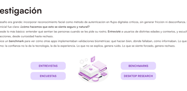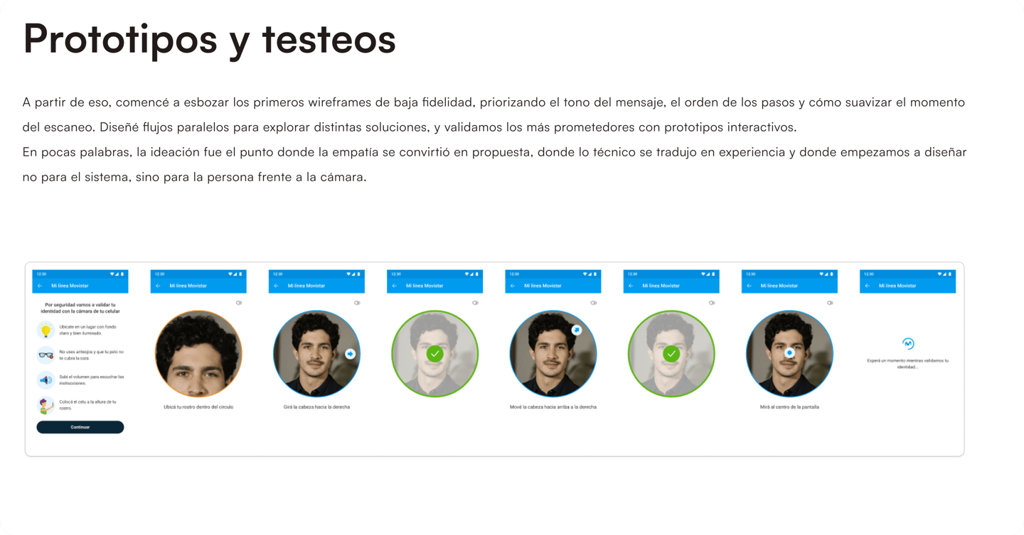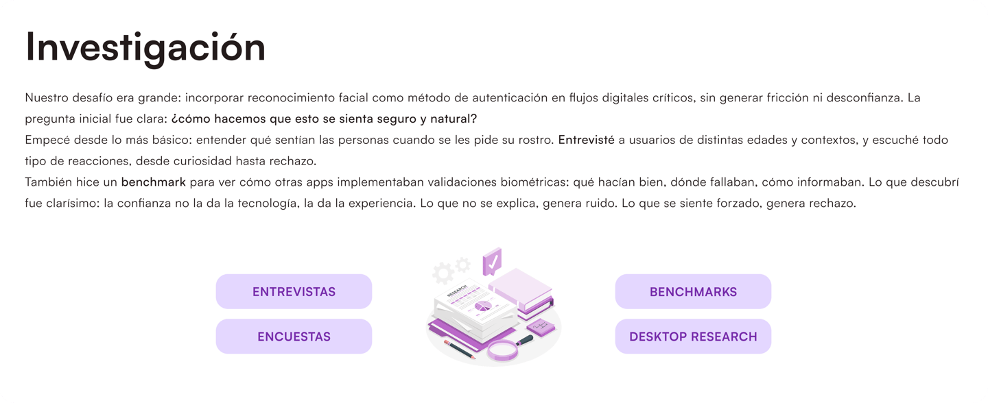 MI ROL Diseñadora UX/UI Research - Redacción de POV y MVP, planificación de investigación, creación del storytelling del flujo, testeo de pantallas y flujos, diseño de feedback visual animado.